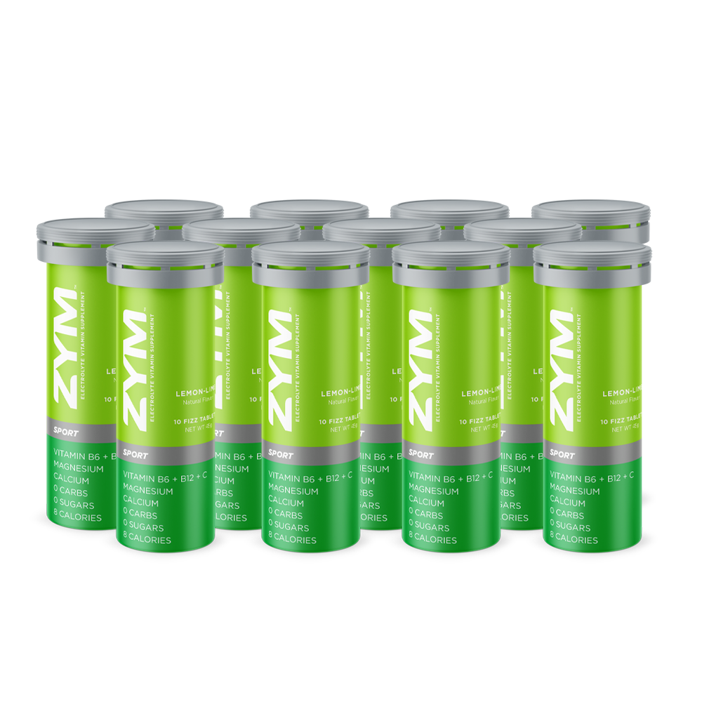 ZYM LEMON-LIME, with natural flavor, has a light lemon flavor, a light lime flavor, and is designed to combat fatigue, muscle cramps and lactic acid build-up. This is an Electrolyte Vitamin Supplement, containing better ingredients, dissolves faster, contains no sugar, has added vitamins, and tastes far better than any electrolyte tablet on the market.  Truly, the taste of ZYM SPORT blows away the competition.